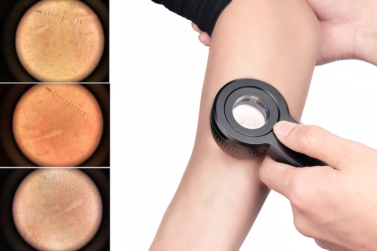 É um dermatoscópio portátil, mas conta com um adaptador universal para telefone, o que significa que é conveniente conectar com qualquer smartphone ou tablet para capturar imagens. Construído com óptica de resolução 4K, ampliação de 10x e campo de visão amplo de 30mm, o Dermatoscópio Celebrim é talvez o dermatoscópio de melhor custo-benefício que já vimos.